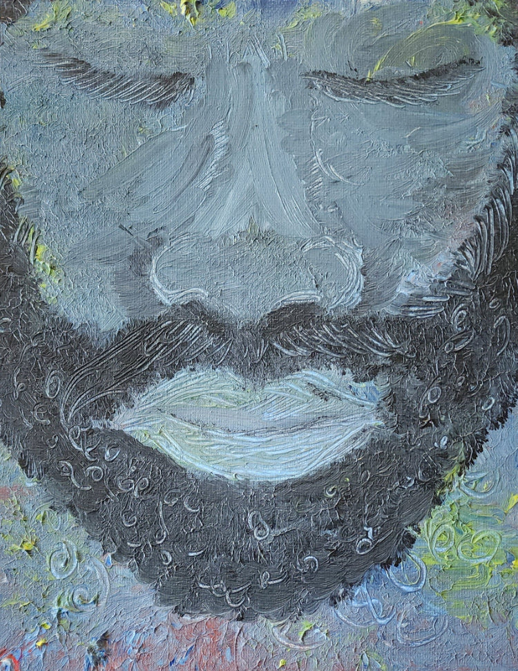 Painted in layered hues of deep blue and black, with lighter tones emerging from shadow, this acrylic work uses color to echo the complex, often unspoken realities of racial conflict in America. The textured brushwork and stark composition command presence and reflection. This original painting is more than a portrait—it is a witness, a statement, and a call to remember.
