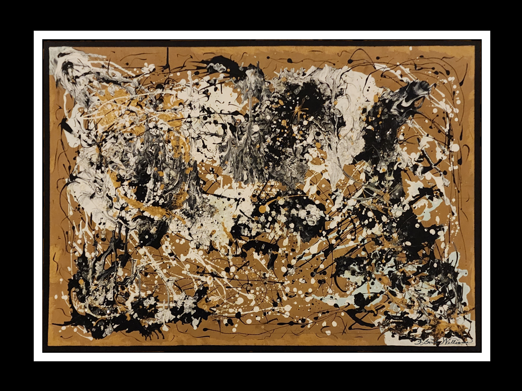 A bold and luminous statement piece, Celestial Drift flows with energy and elegance. Metallic gold ribbons through rich black and soft white, creating a dramatic sense of movement and contrast. Delicate crystals are hand-sprinkled across the surface, catching the light like scattered stars.